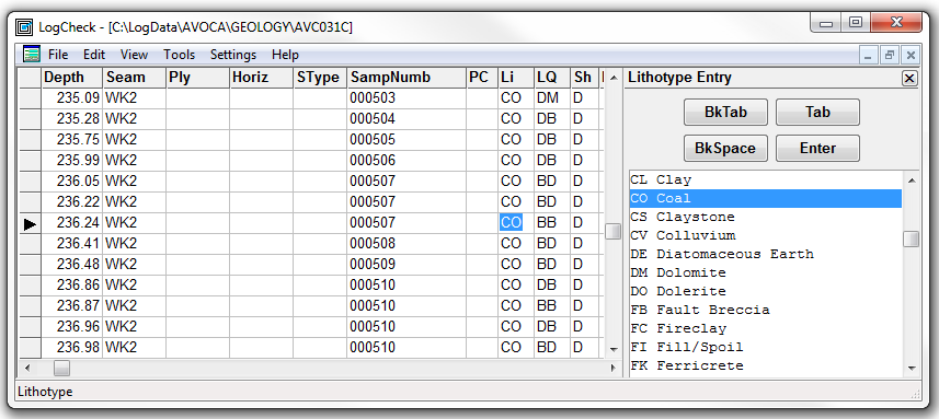 This includes checking that depths are in sequence, compulsory fields such as lithotype are entered, percentages of lithologies add up to 100% and pneumonic codes are contained in the dictionary.